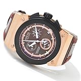 - Sapphire crystal; 18k rose gold plated stainless steel and black ion plated case; brown patterned leather strap