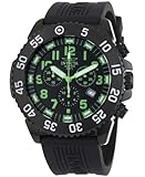 - Black dial with green hands, hour markers and arabic numerals; Luminous; Black unidirectional bezel with white arabic numerals