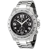 - Black dial with silver-tone hands and arabic numerals; luminous; screw-down crown; tachymeter engraved on bezel